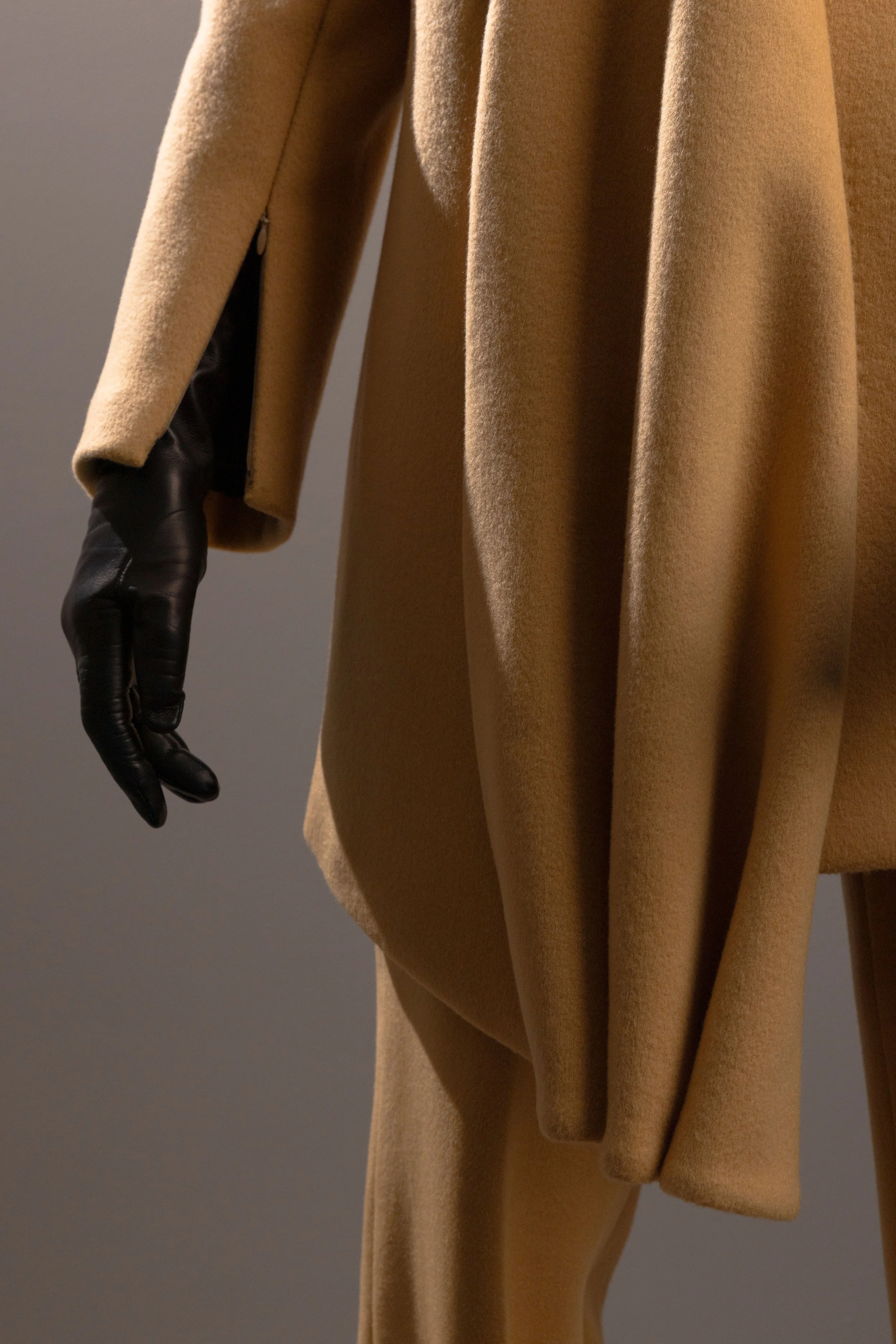 MANTEL Asymmetrischer Spatenkragen mit Drapierung, Magnetverschluss, Eingrifftaschen, Ärmelschlitz mit feinem Reißverschluss, Gehschlitz